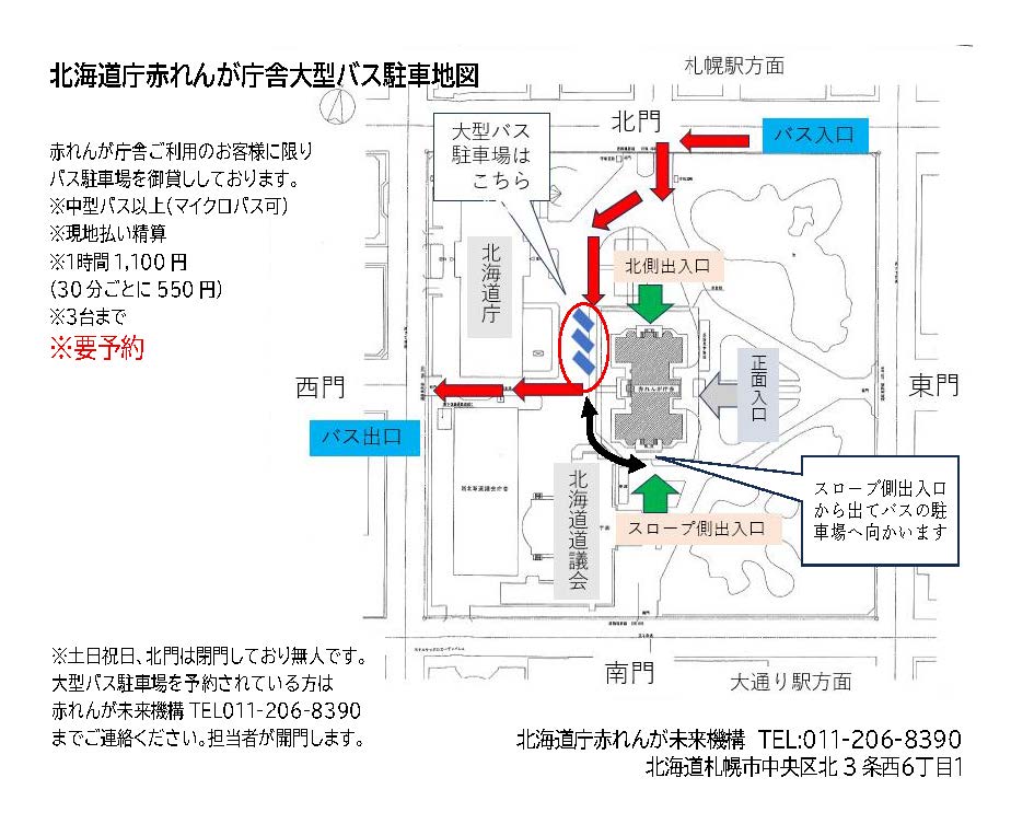 赤れんが庁舎には大型バス専用の駐車場を3台ご用意しております。