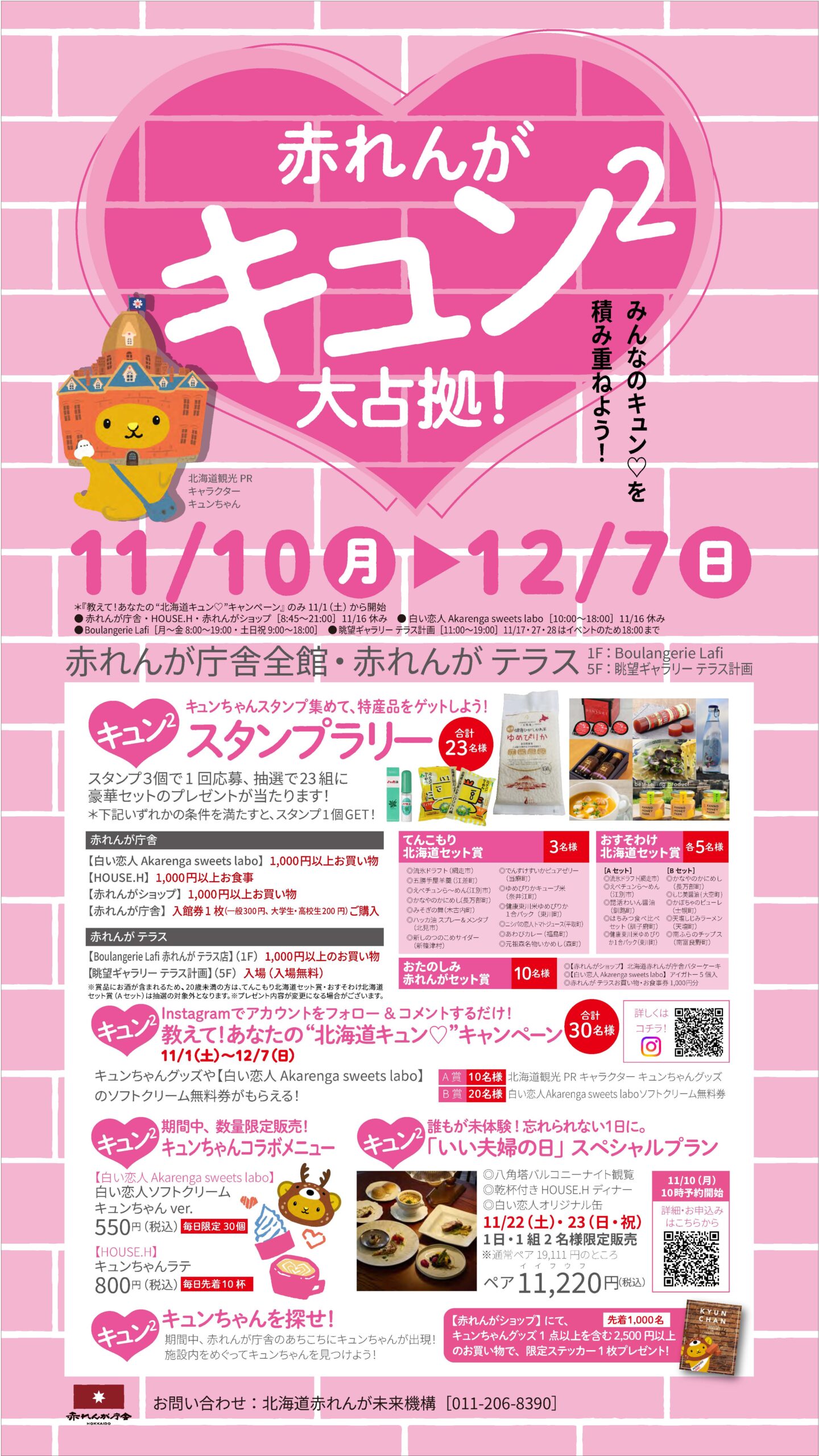 11/10(月)▶12月7日(日)にて、赤れんが庁舎及び赤れんが テラスで「赤れんがキュン²大占拠」を開催いたします。
