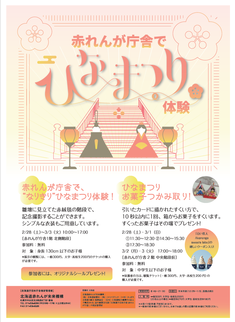 2/28(土)から3/3(火)まで、赤れんが庁舎ではひな祭りイベントを開催します☆