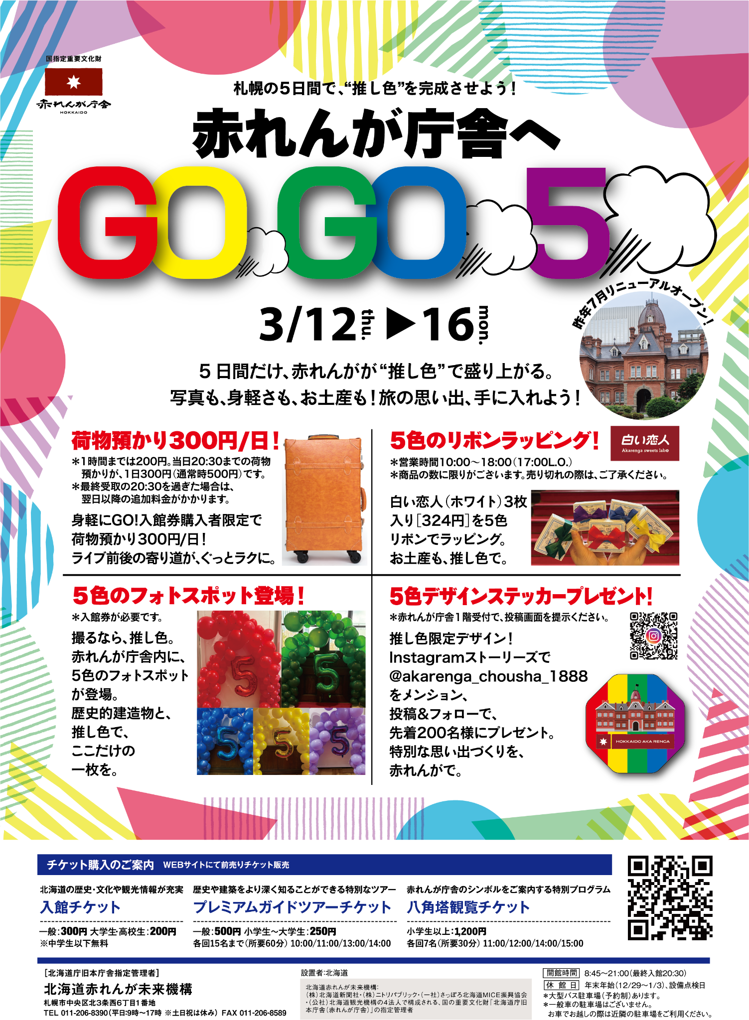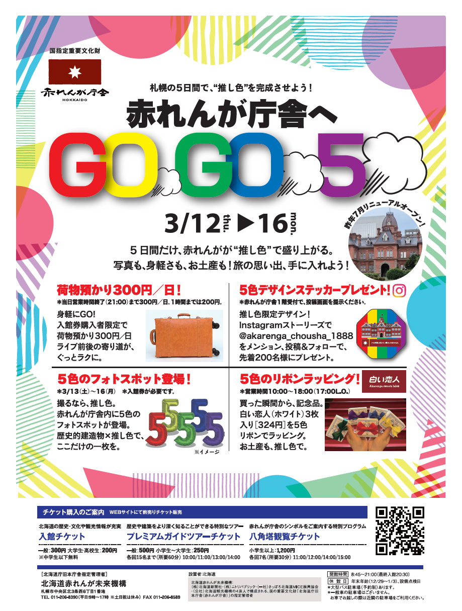 【3/12~3/16】赤れんがが”推し色”で盛り上がる!赤れんが庁舎へGO GO 5開催!